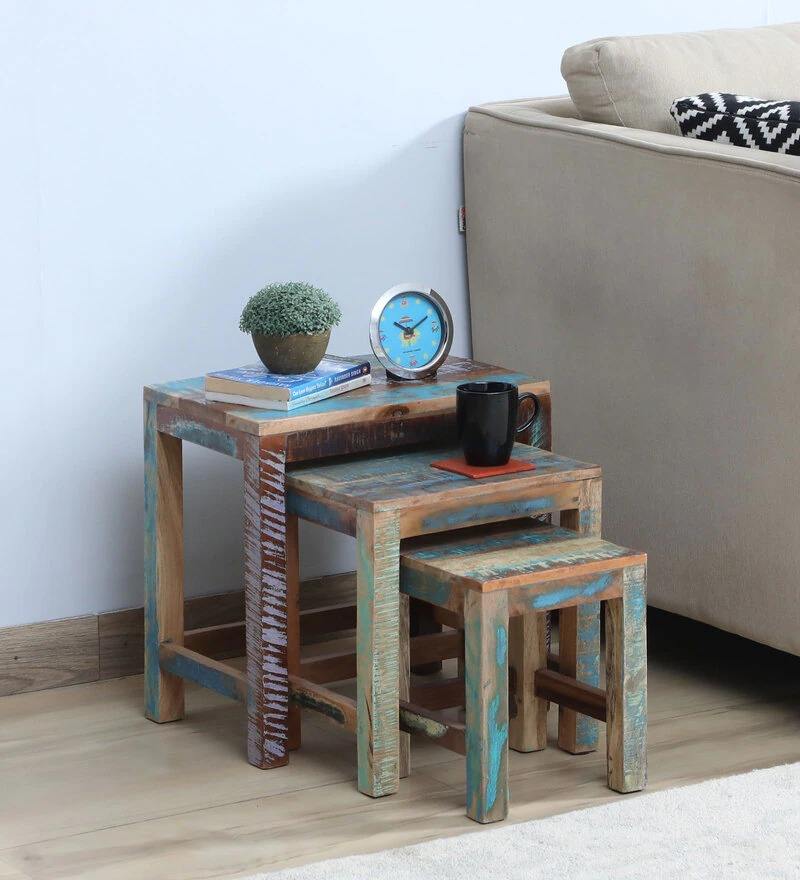 Juego de 3 mesas auxiliares de madera recuperada tradicional Shabby Chic, cajón de almacenamiento, dormitorio de comedor de Hospital multiusos