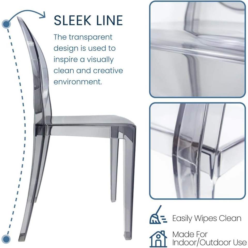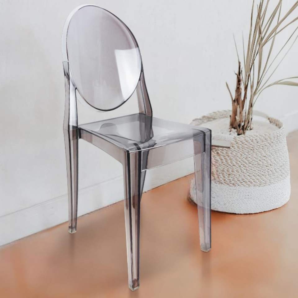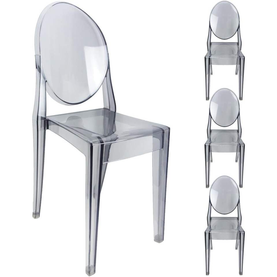 Juego de 4 sillas fantasma transparentes gris humo, sillas laterales transparentes modernas, sillas apilables para comedor, restaurante, para luz de mesa
