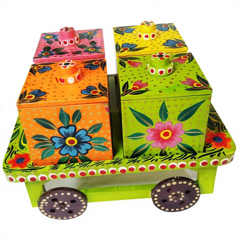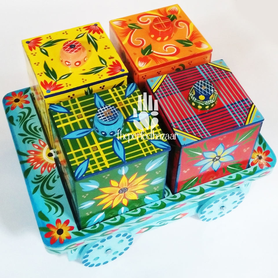 Juego de 4 Cajas Cuadradas para Frutos Secos, Decoración para el Hogar, Adorno de Mesa de Madera Art Deco, Alta Calidad, Ecológico, para Aniversario, Bautizo