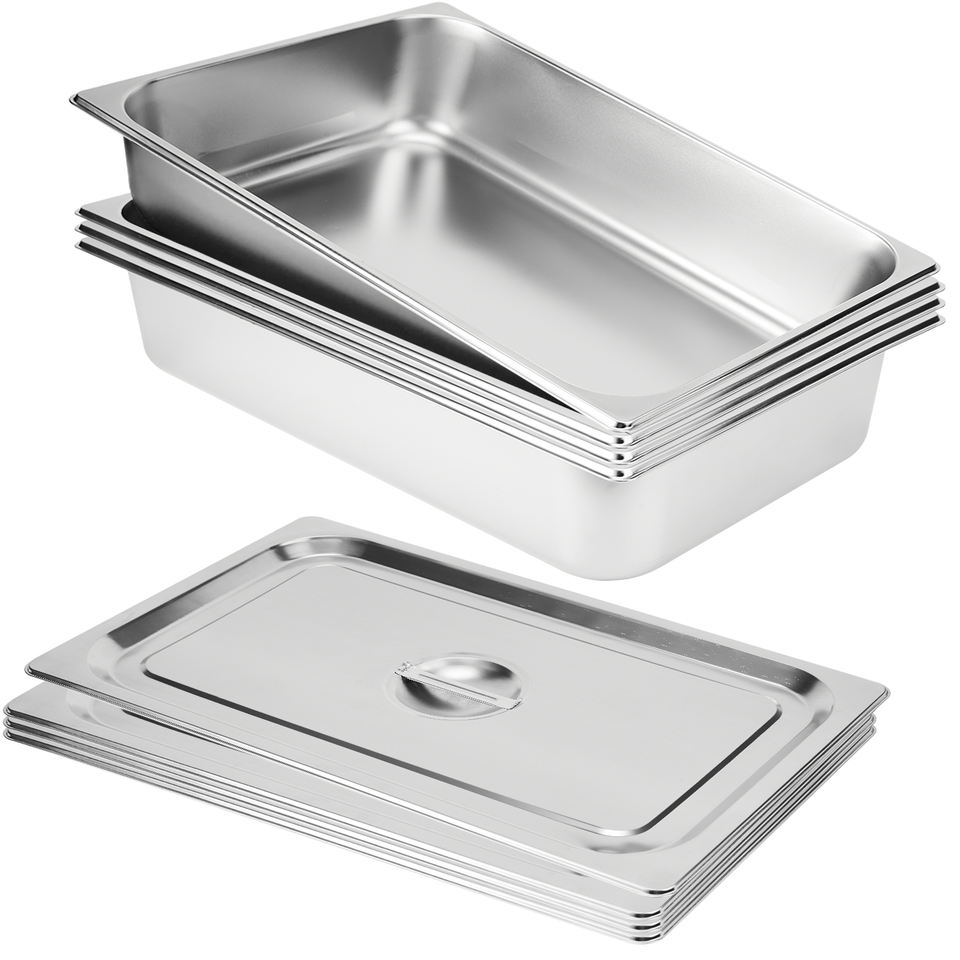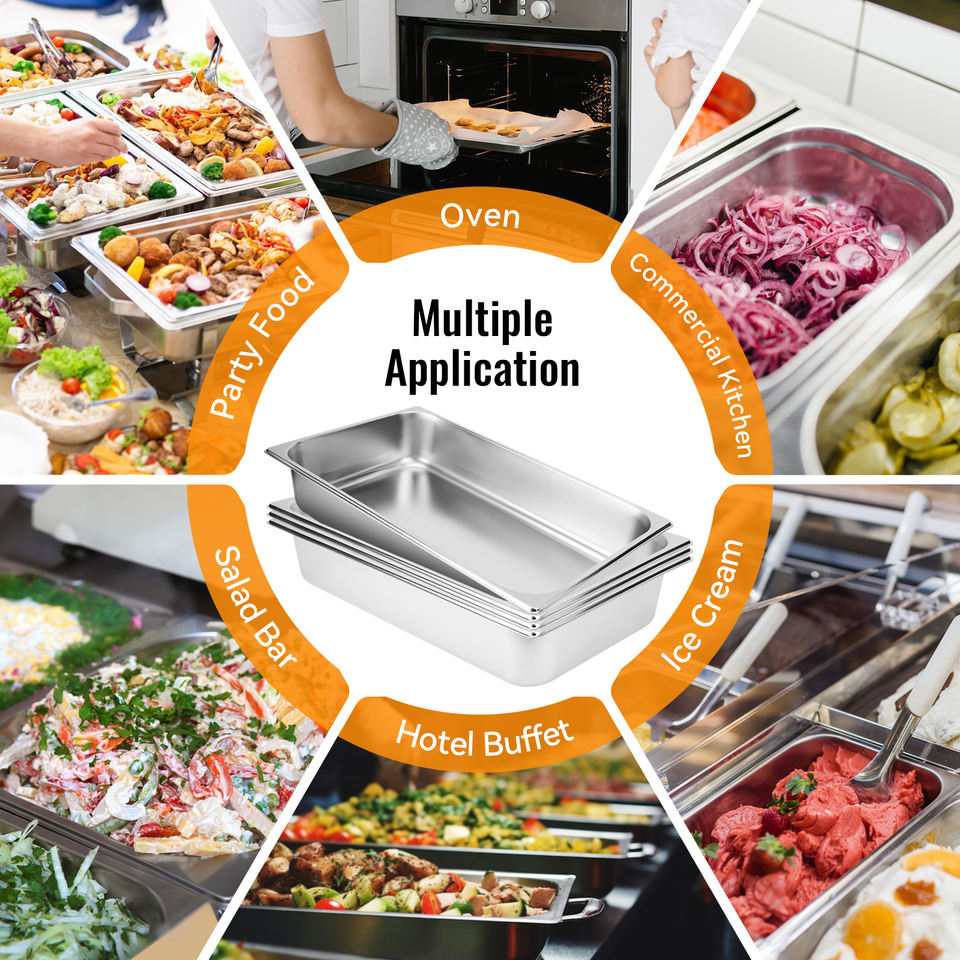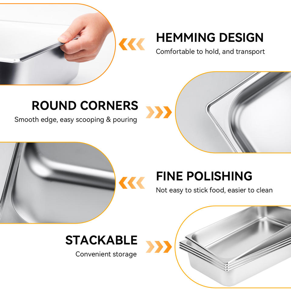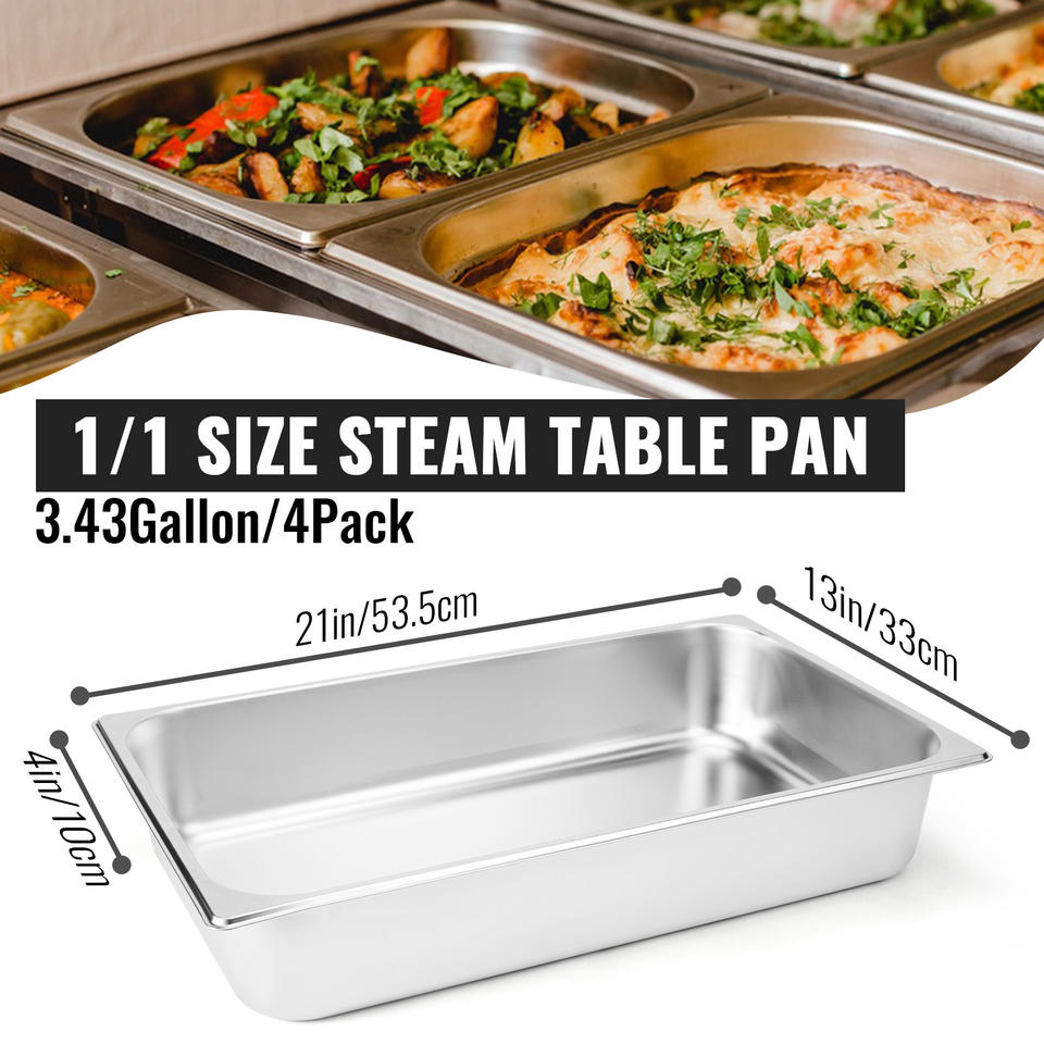 Juego de 4 Recipientes Apilables de Acero Inoxidable con Recubrimiento en Polvo de Grado Alimenticio, de Alta Resistencia, Capacidad de 3.43 Galones, para Cocina de Buffet