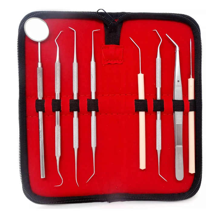Juego de 8 Herramientas Profesionales para Dentistas, Kit de Limpieza Bucal, Sonda de Acero Inoxidable, Herramientas de Limpieza Dental, Palillos Dentales