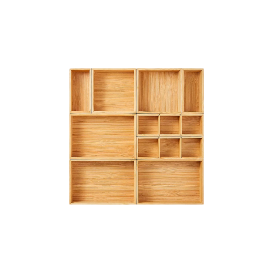 Juego de 9 Cajas de Almacenamiento Rectangulares de Bambú de Estilo Americano, Ecológicas, de 2 Niveles, Multifuncionales, con Acabado Lacado, para Cocina, Escritorio, Cajones
