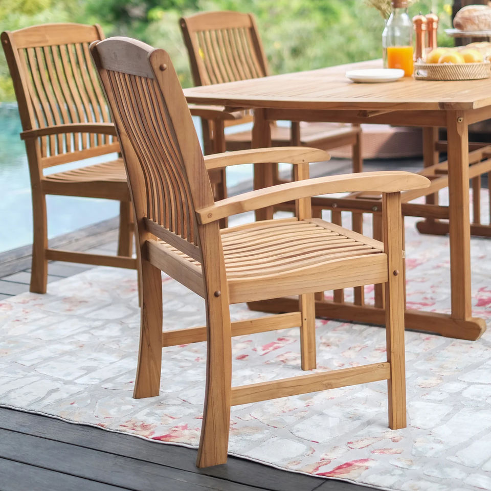 Conjunto de Mesa y Sillas de Comedor para Jardín, Estilo Clásico Minimalista | Mesa de Comedor Extensible de Madera de Teca Natural - Mia