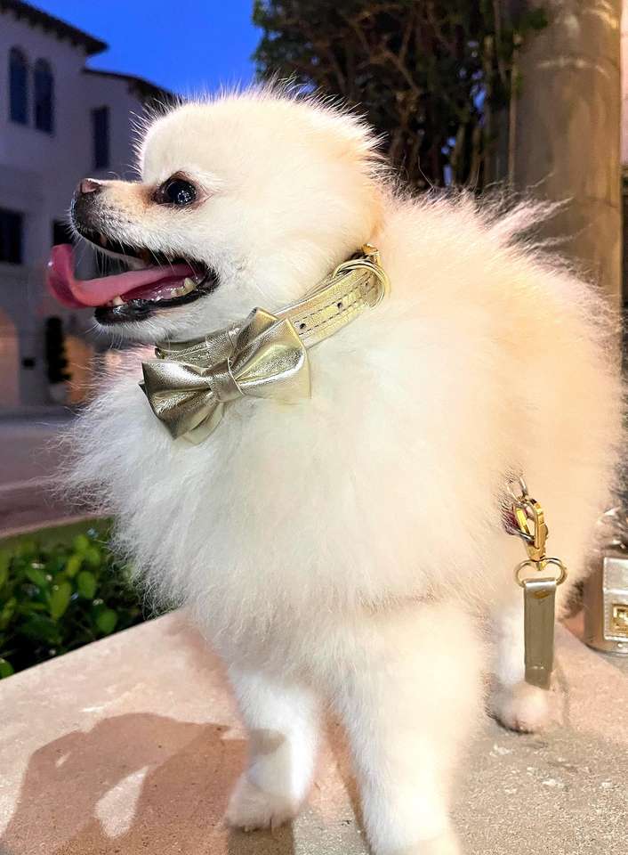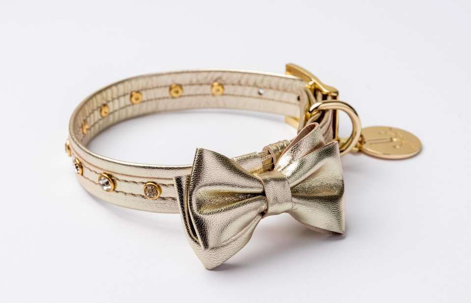 Conjunto de collar de cuero de oro italiano cristales con lazo y correa de tela regalo para amantes-collar de perro de cuero genuino