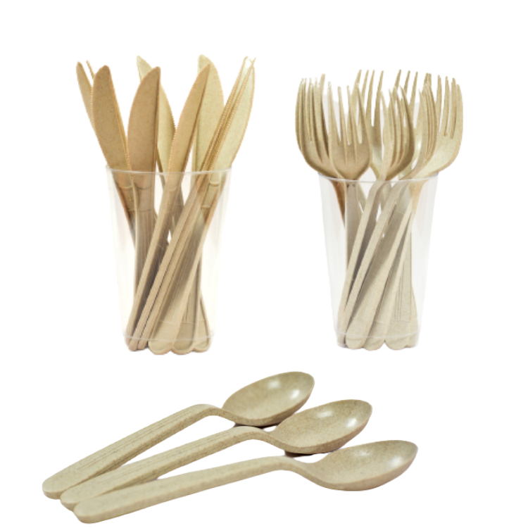 Juego de cuchillos, tenedor, cuchara de té, fabricación en Vietnam, cubiertos de fibra de arroz compostables, cuchara para sopa, cubiertos perfumados con palomitas de maíz