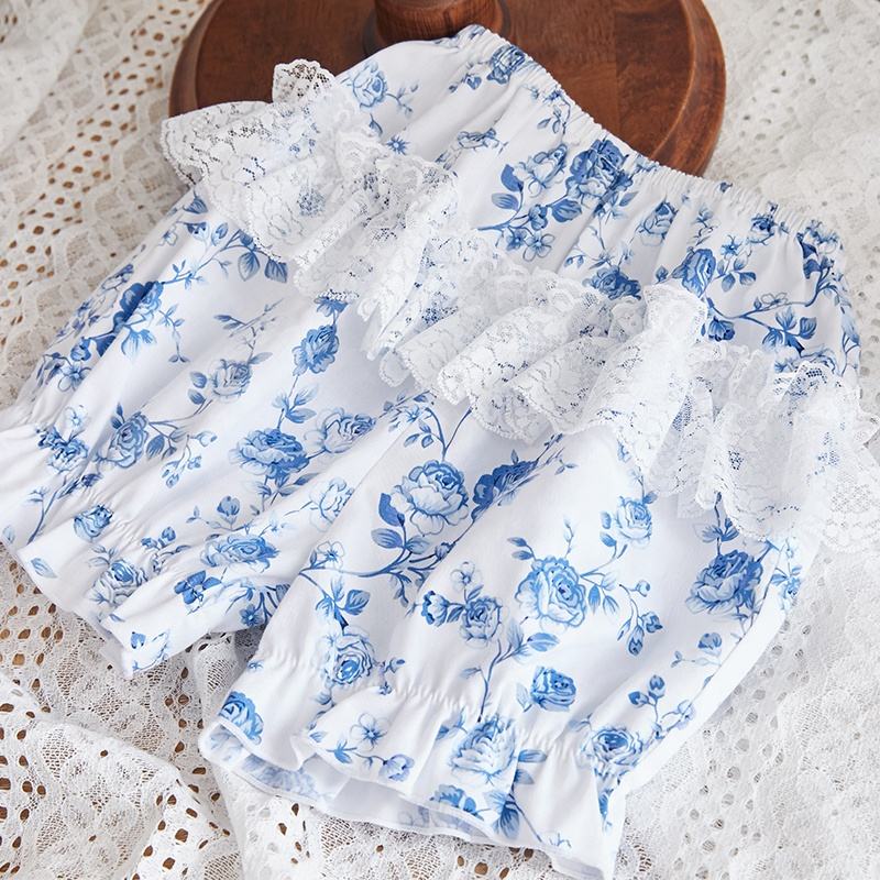 Artículo:3 unids conjunto Lolita Europa azul floral vestidos de bebé niñas vestido español