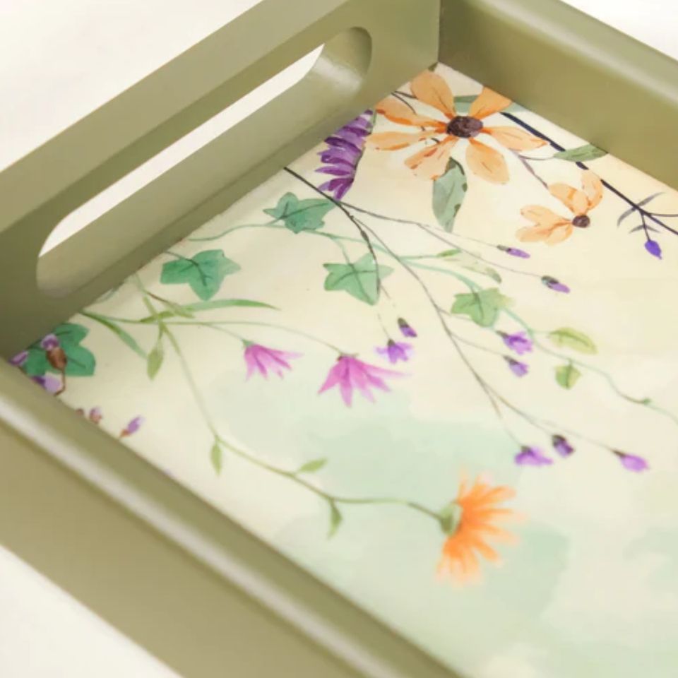 Set Bandejas de anidación Ahorro de espacio Bandeja de servicio de laca Patrón de flores OEM ODM MOQ bajo Venta al por mayor Vietnam