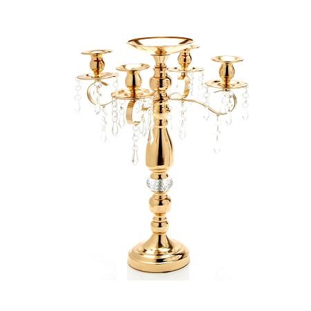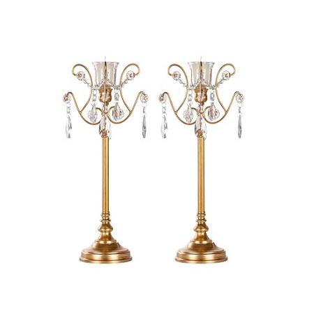 Juego de 2 candelabros de latón y cristal, candelabros exclusivos de color dorado de calidad para uso en hoteles y restaurantes
