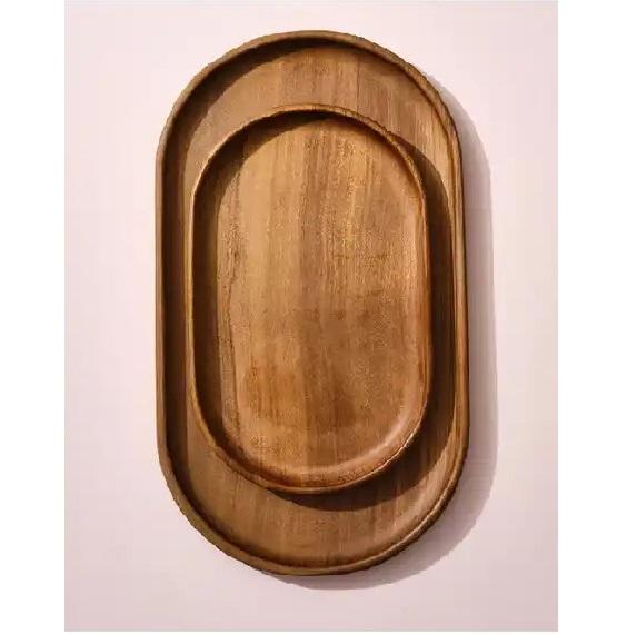 Juego de 2 bandejas de madera natural para servir alimentos de diferentes tamaños, para el hogar y el restaurante forma ovalada, bandeja para servir aperitivos y bebidas