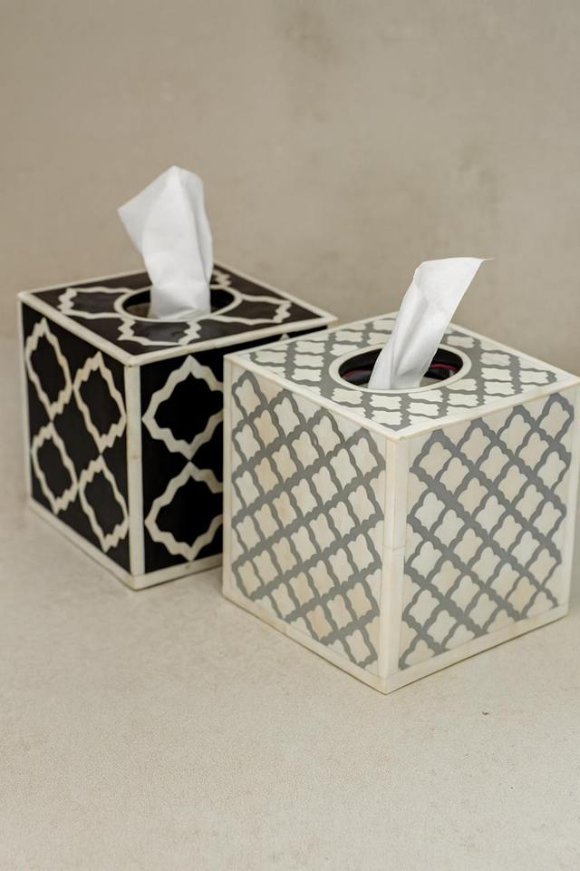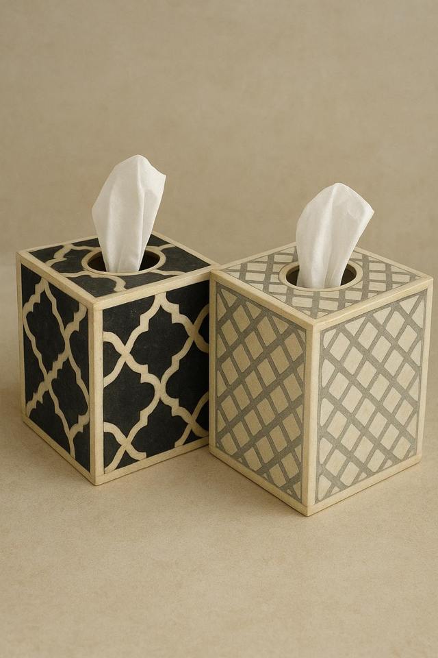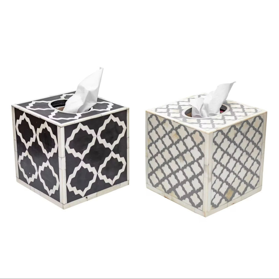 Juego de 2 cajas de pañuelos cuadradas decorativas con incrustaciones de hueso hechas a mano, ideales para encimeras de cocina, baños y tocadores.