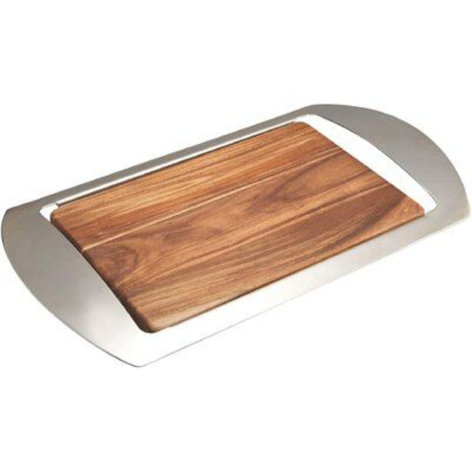 Juego de 2 Bandejas de Servir Hechas a Mano de Madera de Mango Maciza con Asa de Hierro, Acabado Natural, Rectangulares, Decorativas para Cocina y Hogar