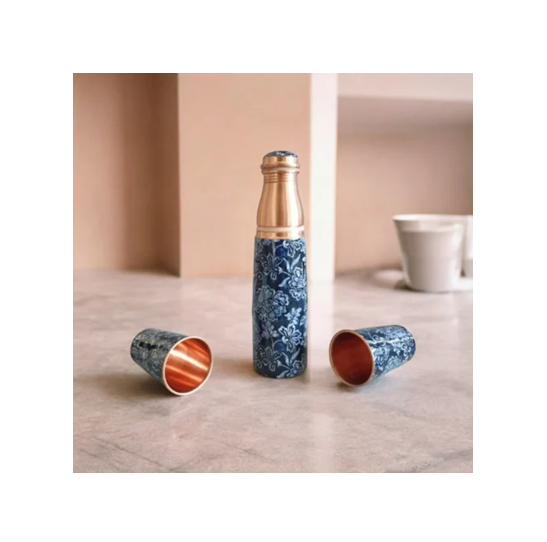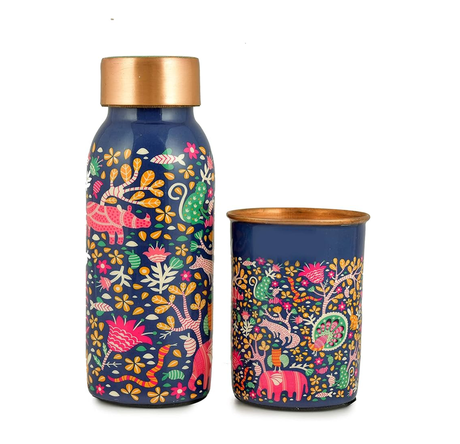 Juego de 2 botellas de agua impresas de cobre de alta calidad, botellas de cobre pulidas brillantes a pedido a un precio asequible