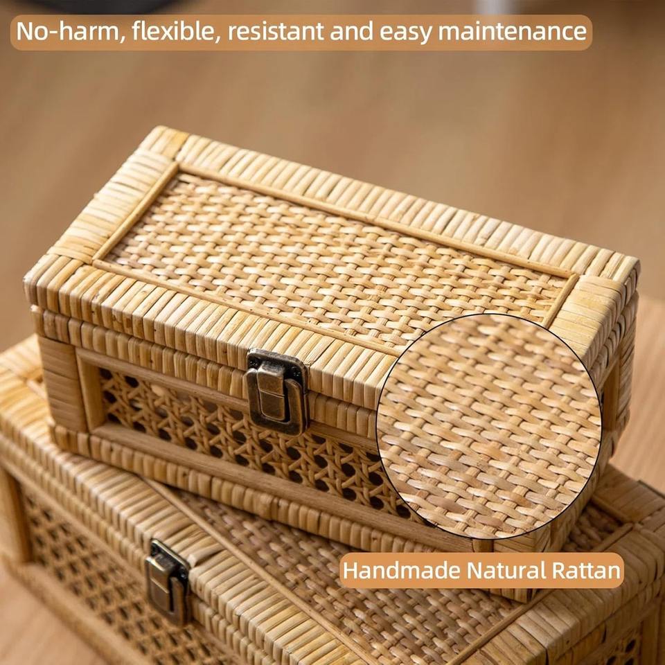 Nombre:Juego de 2 cajas de almacenamiento rectangulares de mimbre