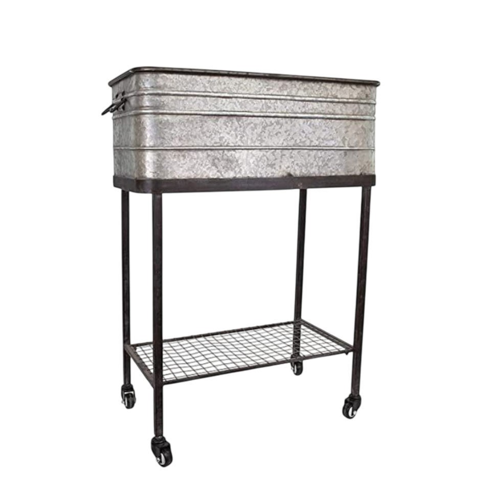 Juego de 2 macetas redondas de metal galvanizado con soportes de hierro verde envejecido para decoración de interiores, exteriores, jardín y hogar en oferta.