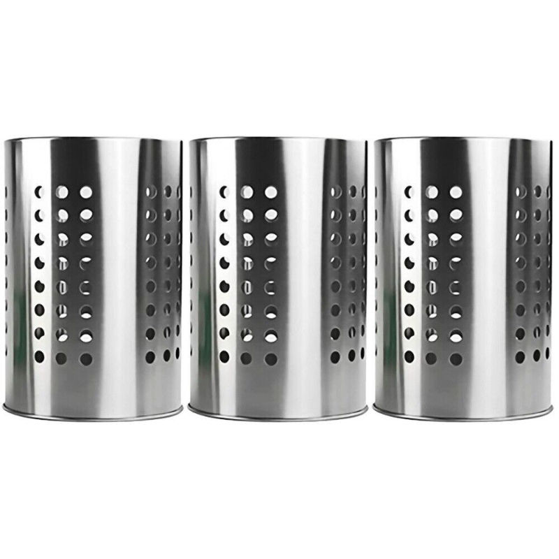 Juego de 2 portacubiertos de acero inoxidable de color plateado con forma redonda, organizador de almacenamiento de utensilios para mesa de comedor