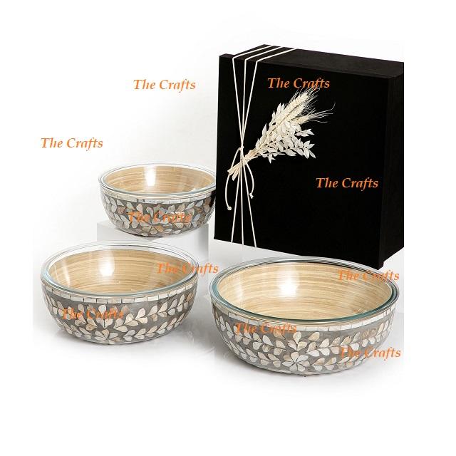 Cuenco de madera y vidrio para chocolates con trabajo de nácar, Juego de 3 cuencos decorativos para frutas de diferentes tamaños