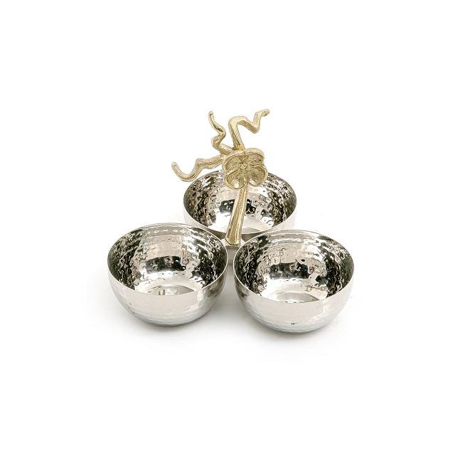 Juego de 3 cuencos de aluminio de diferentes tamaños para servir frutas secas, cuenco de forma redonda de Color plateado con soporte para fregona