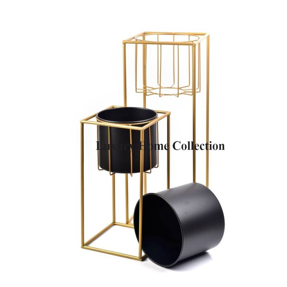 Juego de 3 macetas y macetas decorativas para balcón interior de Color dorado, accesorios decorativos para suelo hechos a mano de diseñador elegante, suministros