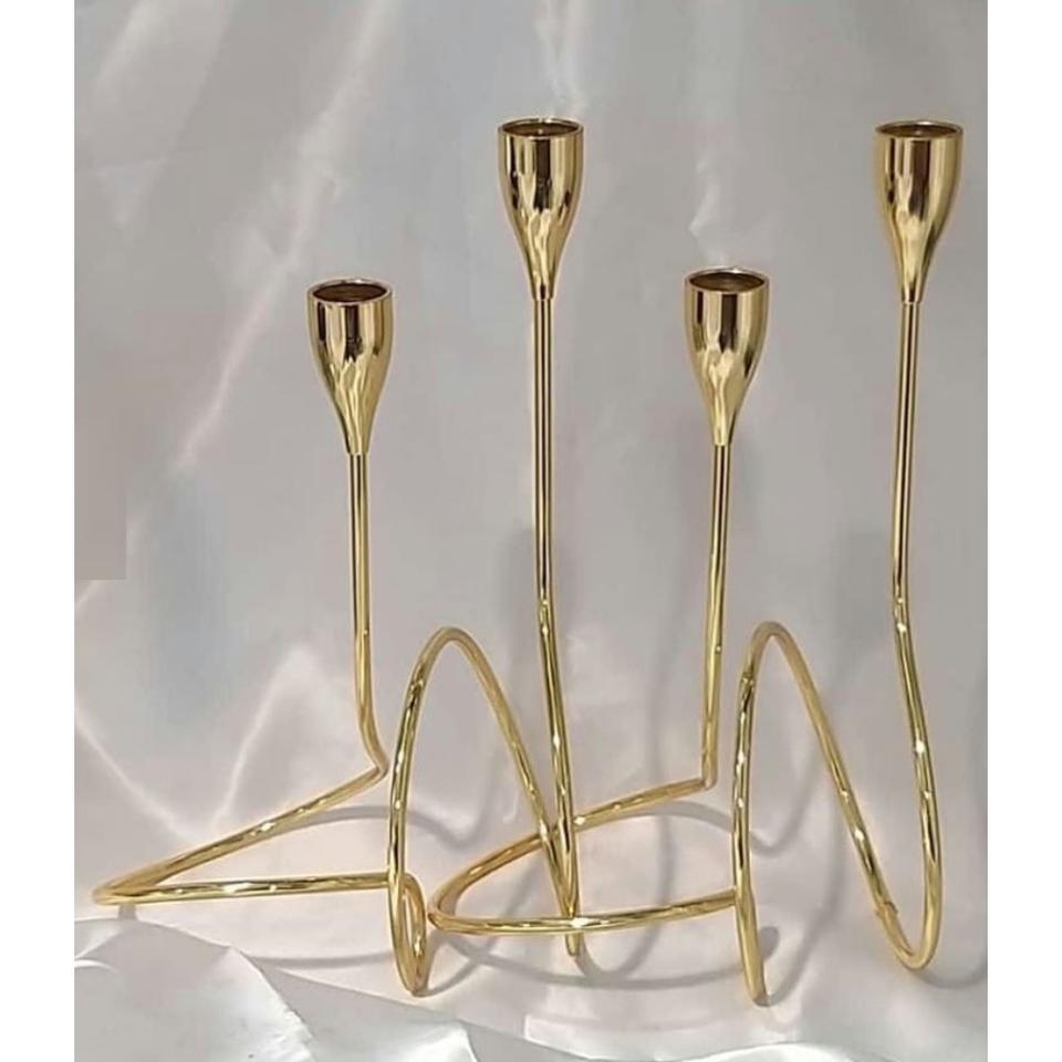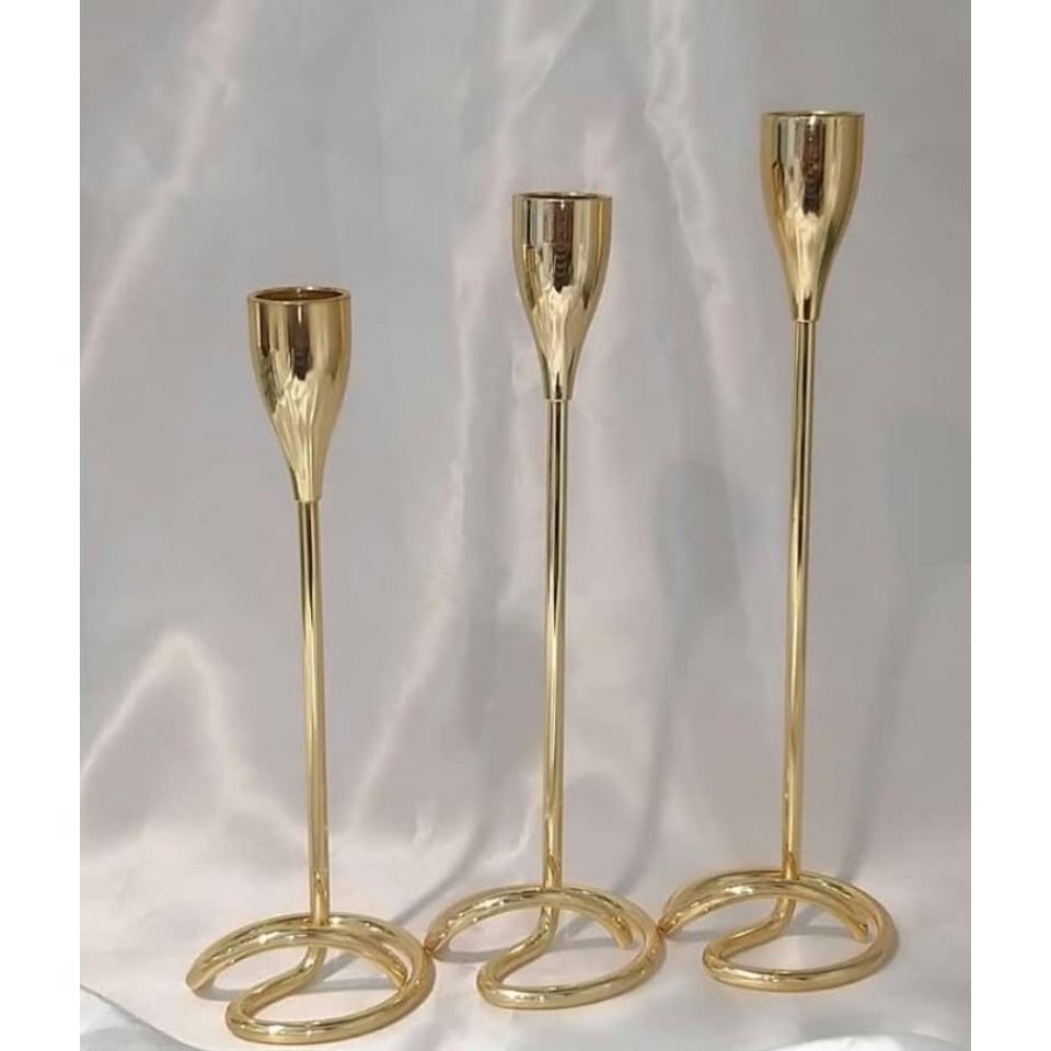 Juego de 3 Candelabros Decorativos de Mesa, Diseño Clásico, Portavelas de Metal Dorado, Material Metálico de la Más Alta Calidad