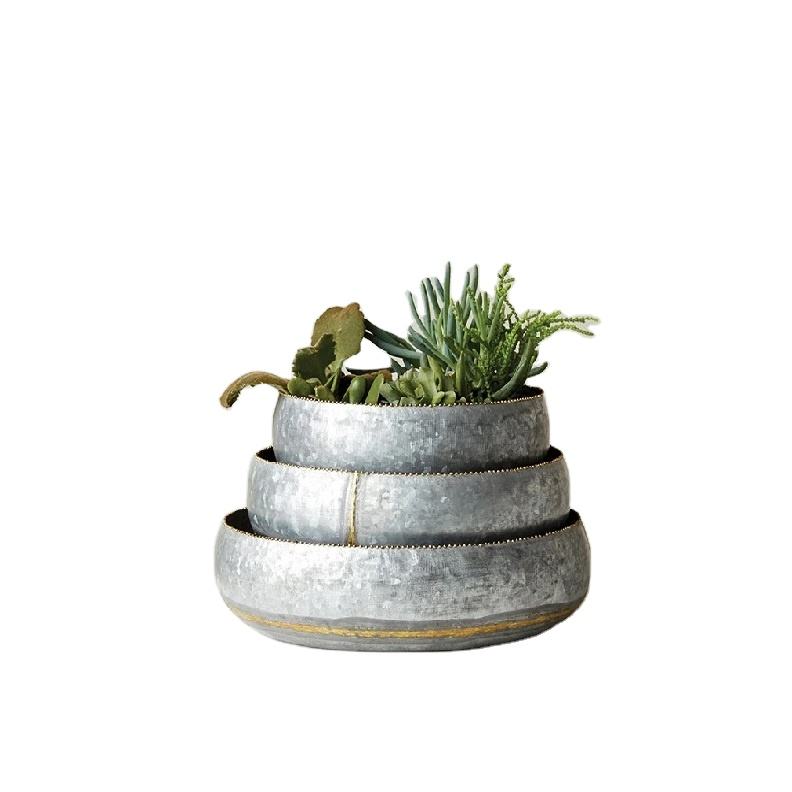 Juego de 3 macetas decorativas galvanizadas, de Metal de acabado de alta calidad