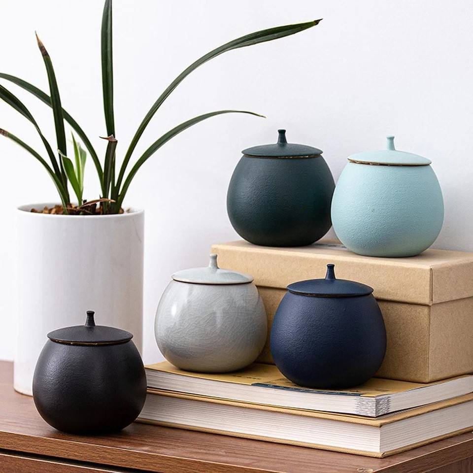 Juego de 5 recipientes de cerámica con tapas herméticas, recipientes seguros para alimentos, organizador de cocina duradero, almacenamiento moderno para encimera