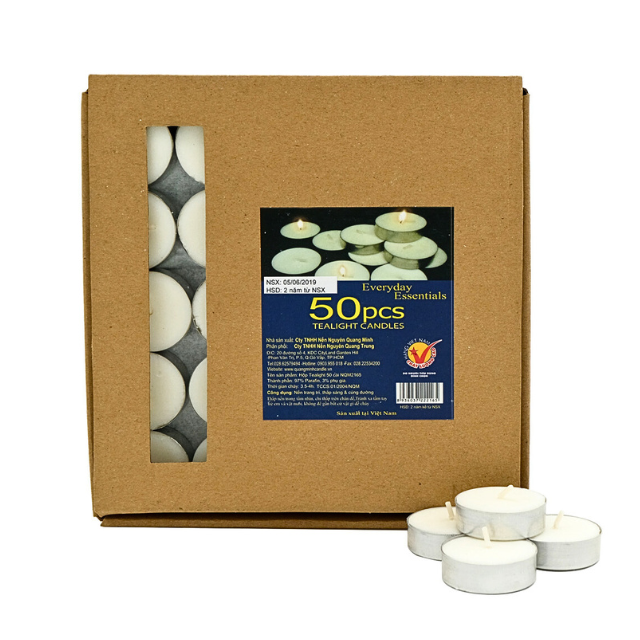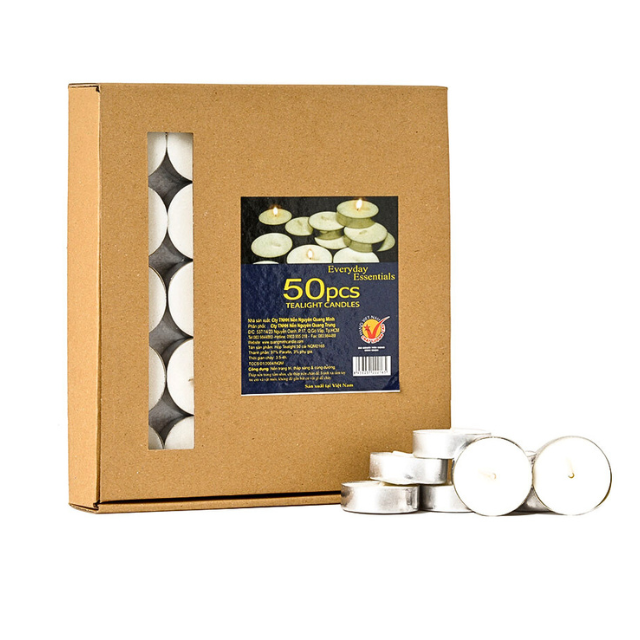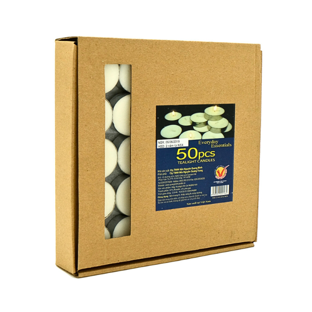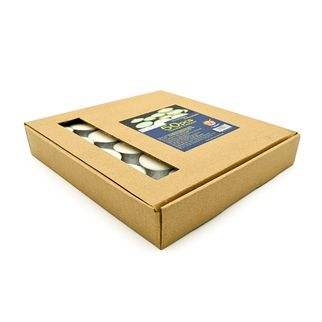 Packaging Description:50 Pressed Tealight Candles in Alu Cups / Packaged in Cardboard Boxes