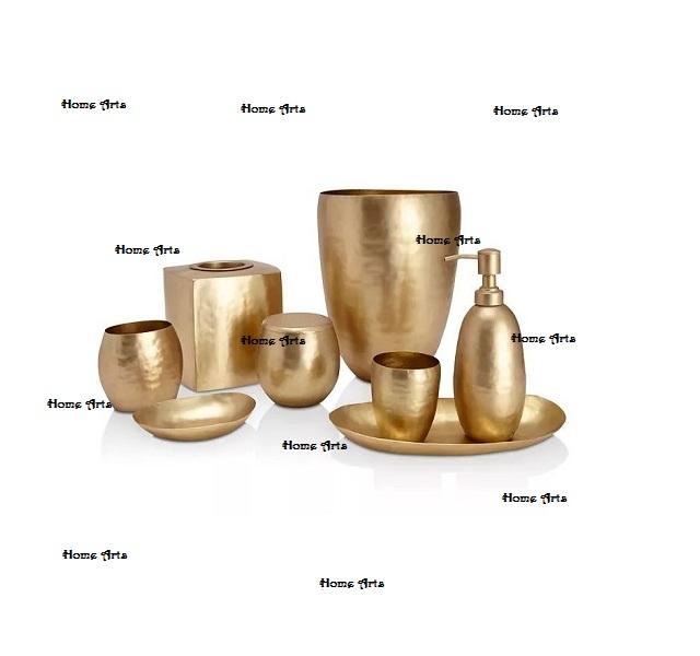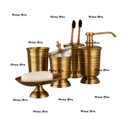 Juego de Baño de Latón Hecho a Mano de Ocho Piezas Home Arts, Diseño Clásico de Primera Calidad, Color Dorado, para Uso en el Hogar y Hoteles