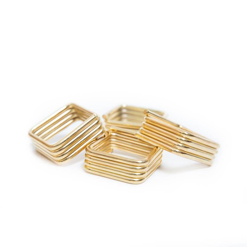 Juego de cuatro anillos de tejido de metal con acabado dorado Anillo de servilleta de diseñador hecho a mano Anillo de servilleta de metal al por mayor con estilo clásico