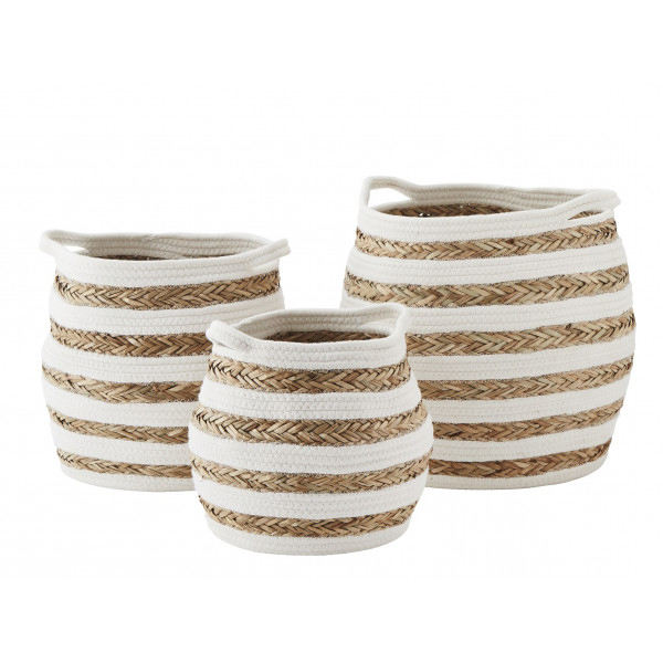 Conjunto de cestas de almacenamiento de mimbre de nuevo diseño Cesta de algas marinas de algodón y costura Productos de organización para el hogar Categorías para el hogar