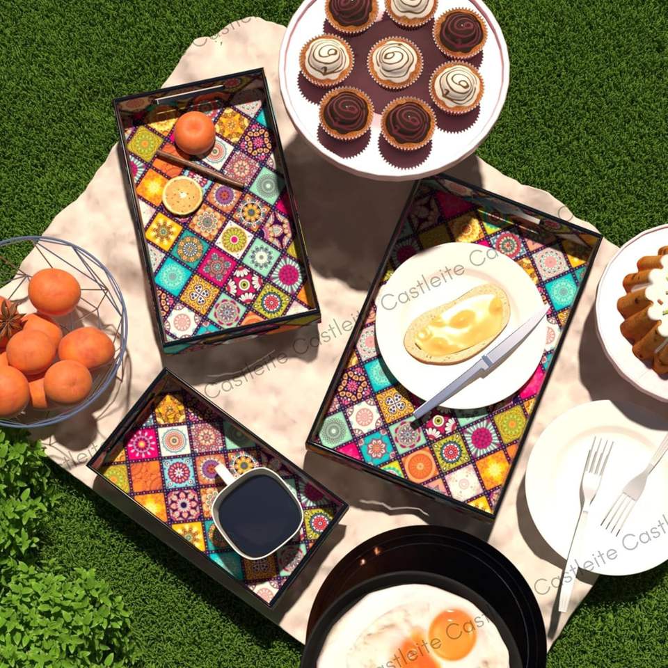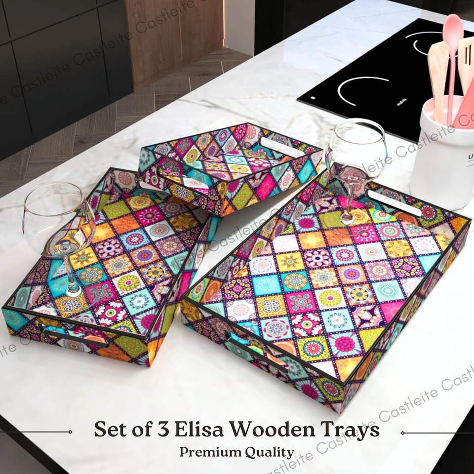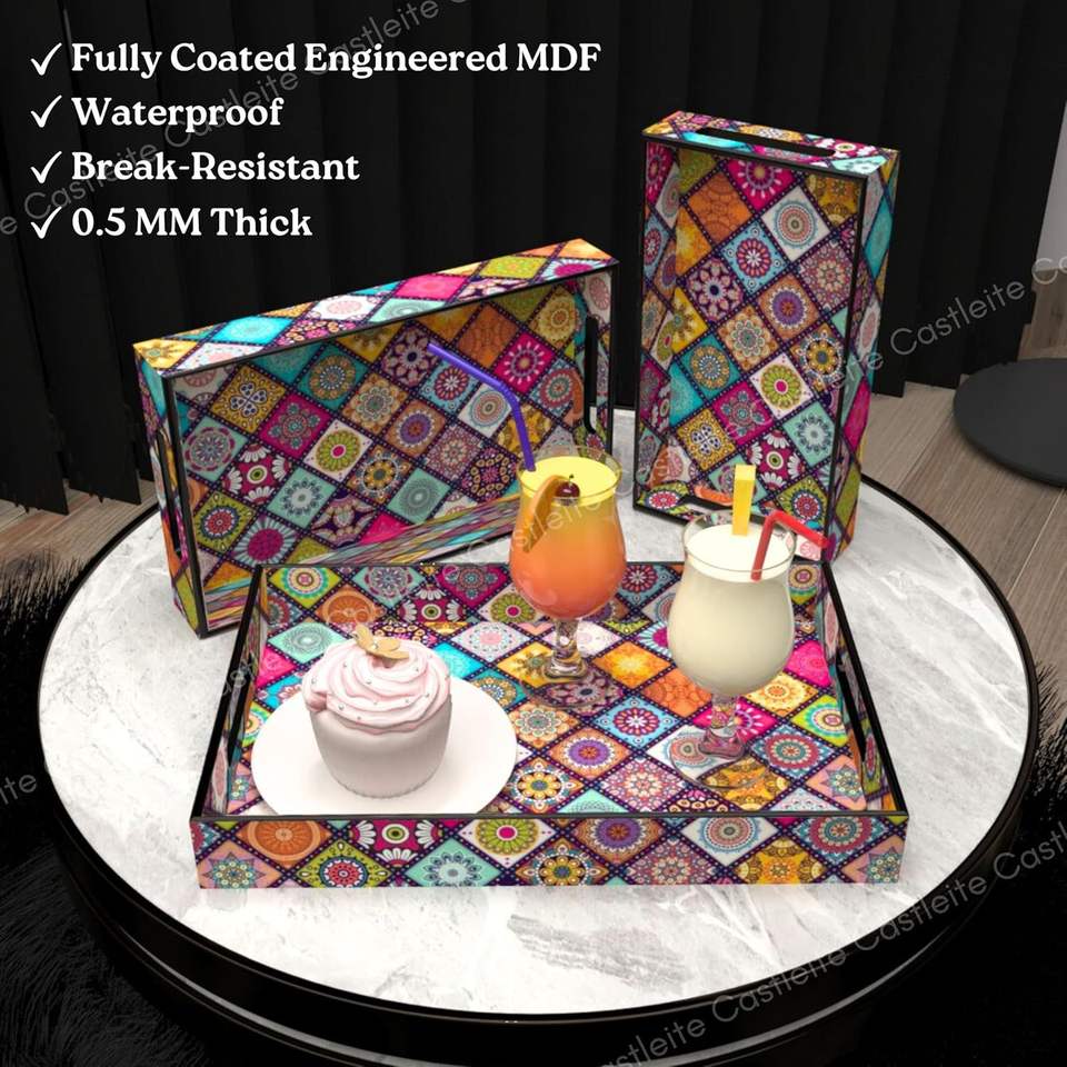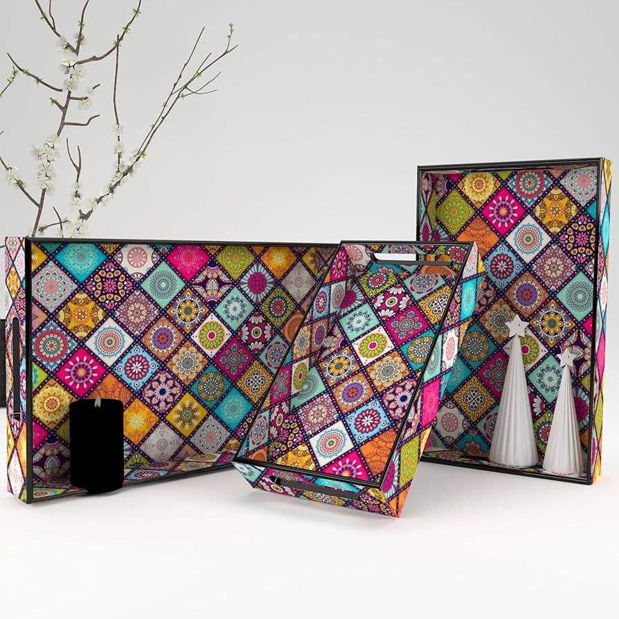HF CRAFTS-Juego de tres bandejas rectangulares de servicio de MDF con impresión personalizada, superventas, bandejas de desayuno y cena OEM ODM