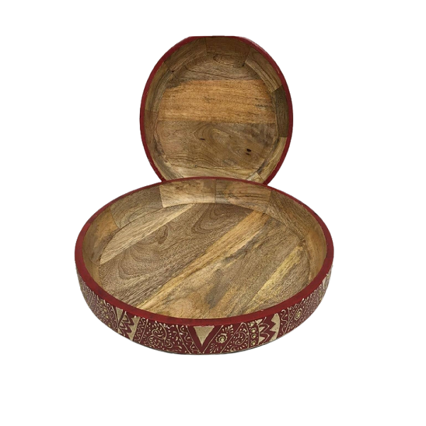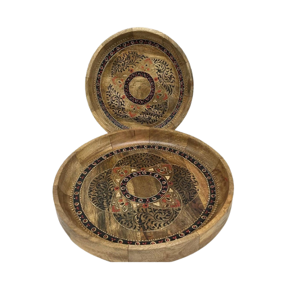 Juego de dos platos para servir aperitivos de diferentes tamaños en forma redonda de madera plato para servir alimentos para uso en bodas