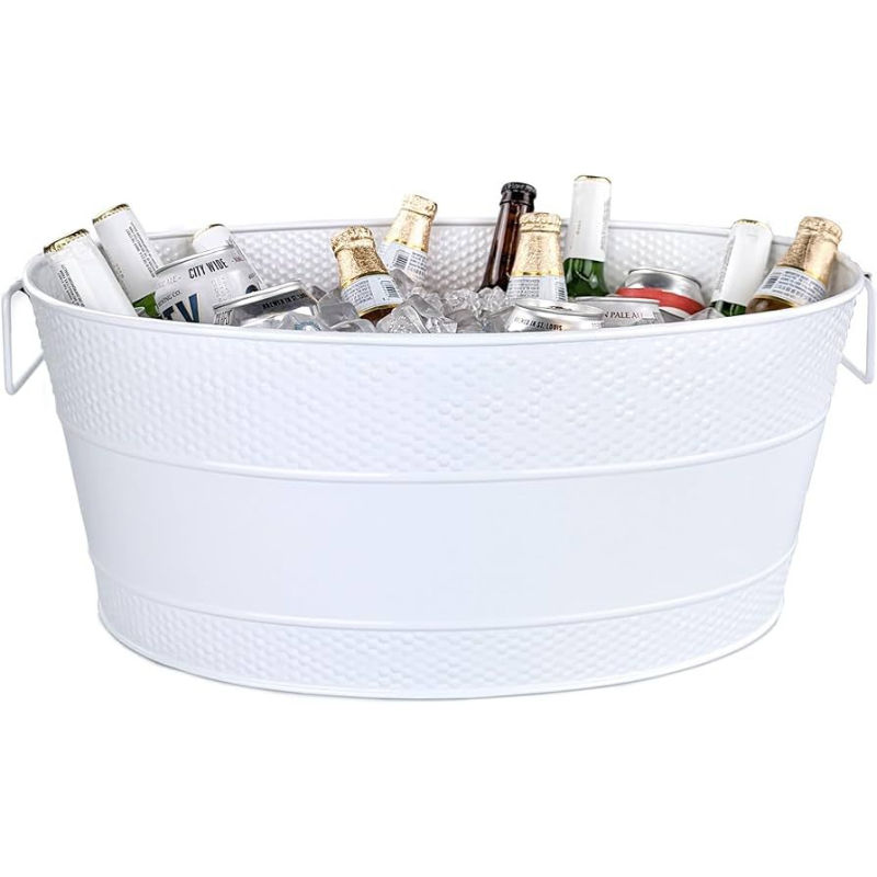 Juego de dos enfriadores de bebidas de metal galvanizado con asas de cuerda para el hogar y eventos, cubo enfriador de vino para bar.