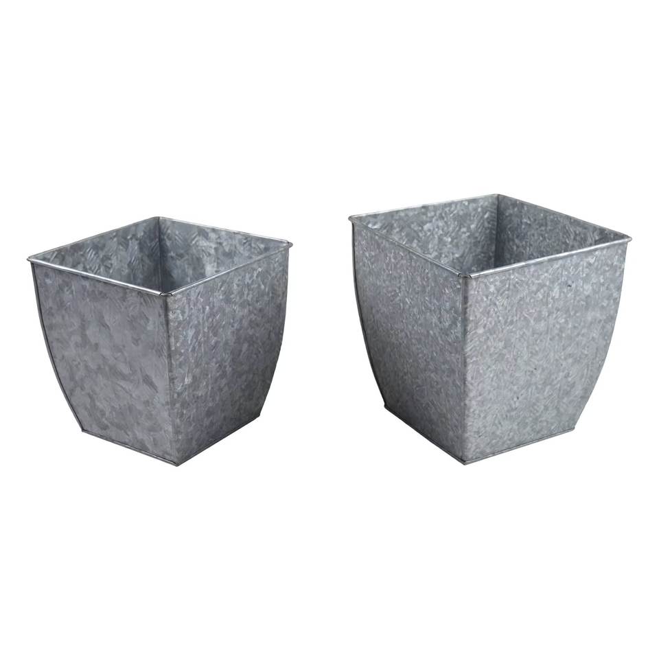 Juego de 2 macetas de flores cuadradas de metal galvanizado para decoración de interiores y exteriores Macetas y macetas