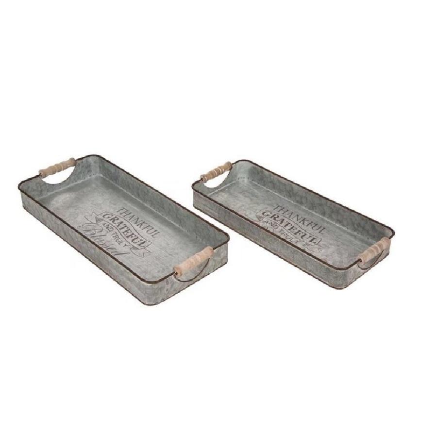 Juego de Dos Bandejas Redondas de Hierro Galvanizado, Ecológicas, Aptas para Lavavajillas, con Asas, Hechas a Mano, para Decoración del Hogar y Organización de la Cocina