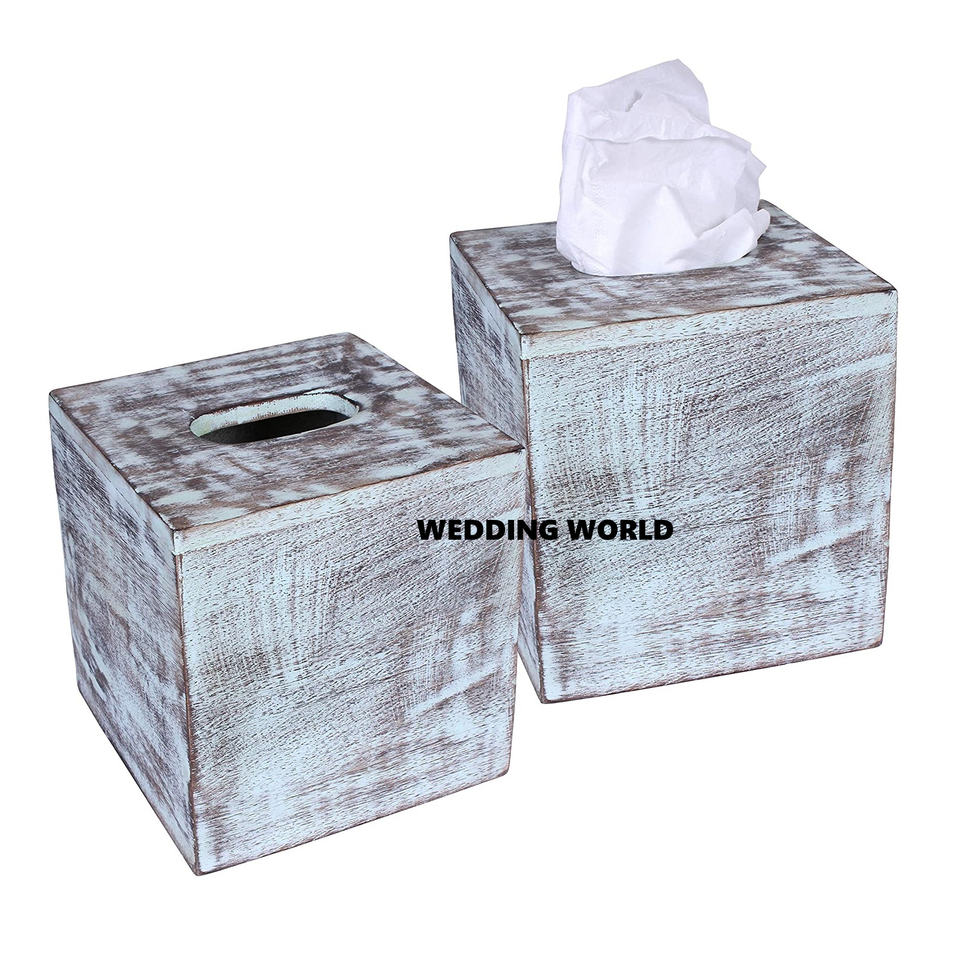Juego de dos cajas de pañuelos de madera Utensilios de cocina hechos a mano con estilo clásico Mesa decorativa Nueva caja de pañuelos de madera al por mayor