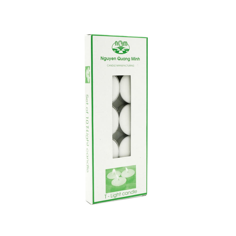 Packaging Description:10 Pressed Tealight Candles in Alu Cups / Packaged in Paper Boxes