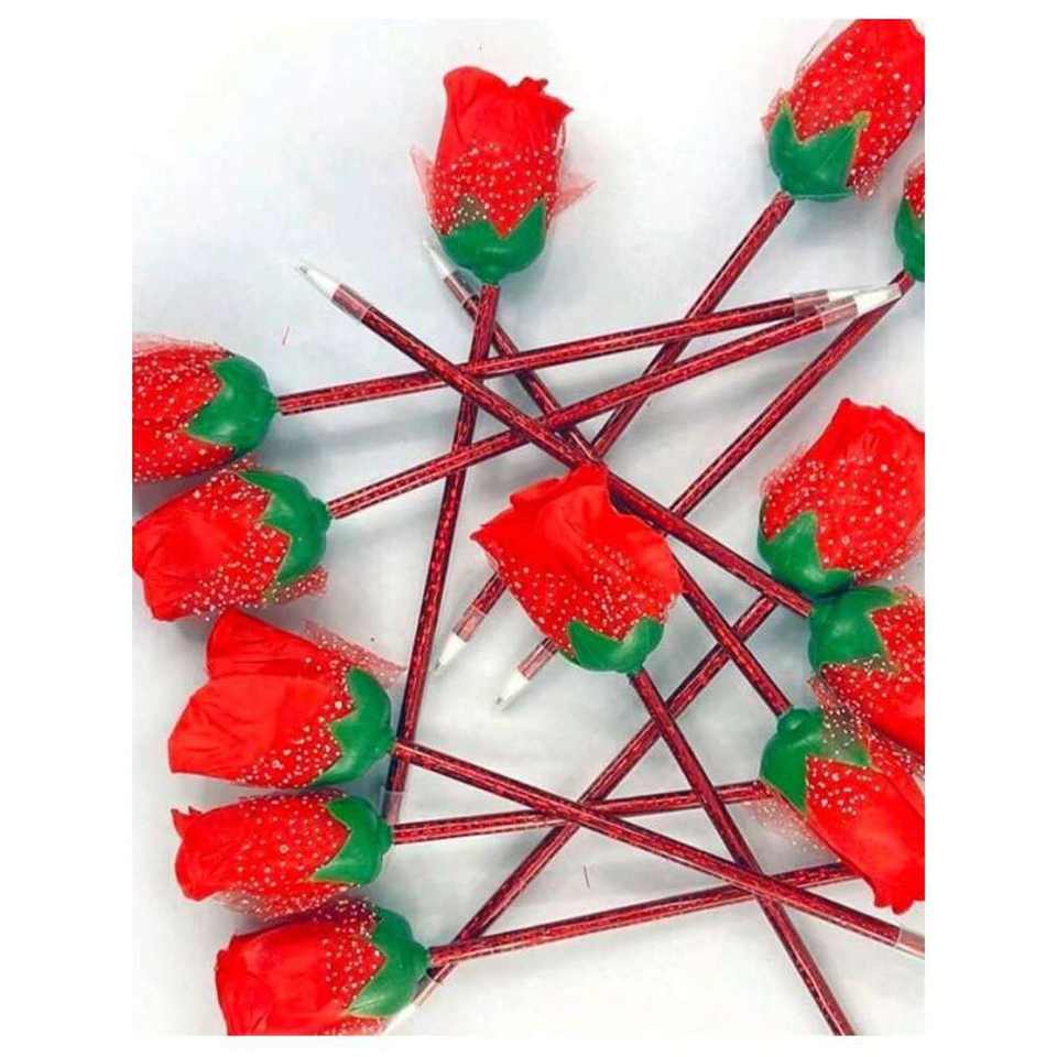 Juego de 12 bolígrafos en forma de rosa roja, tinta de gel de punta fina para amor y amistad para estudiantes y uso en la oficina