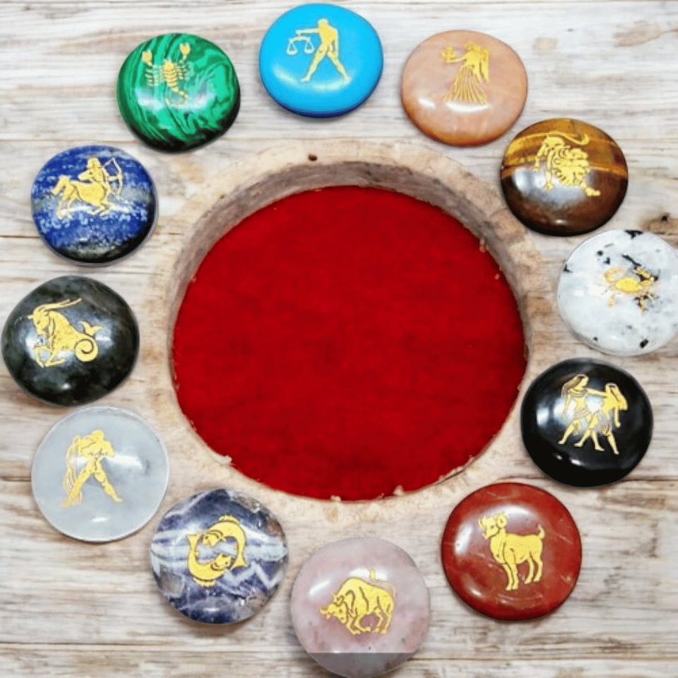 Número de Modelo:#Set of 12 Zodiac Sign Engraved Stones
