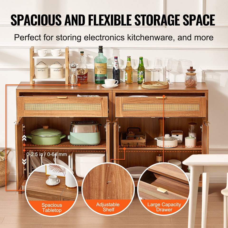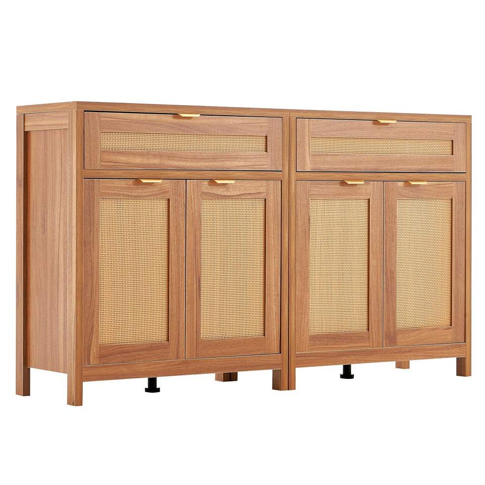 Juego de 2 Gabinetes de Almacenamiento Ajustables de Ratán, Aparador con 4 Puertas Magnéticas y 2 Cajones para Almacenamiento en Bar