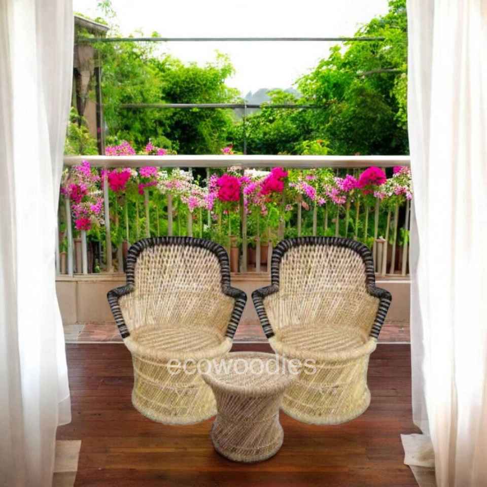 Nombre del producto:Conjunto de 2 Silla de bambú y taburete Patio Jardín