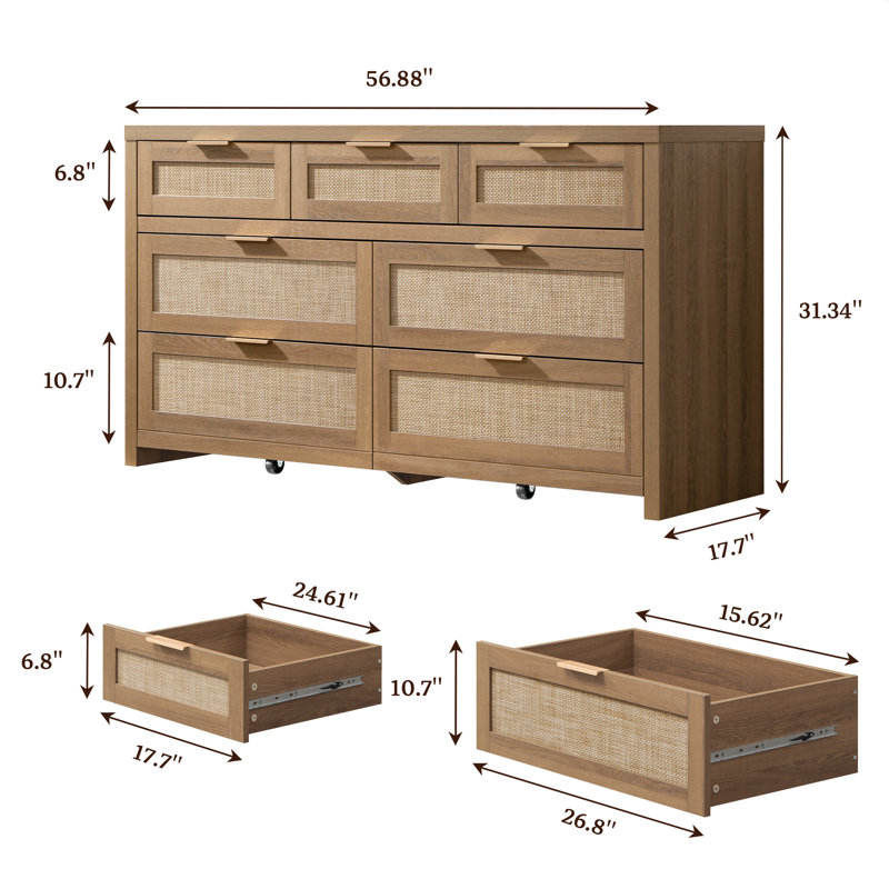 Juego de 2 tocadores de ratán bohemio de 7 cajones de 56,88 \ "con amplio almacenamiento