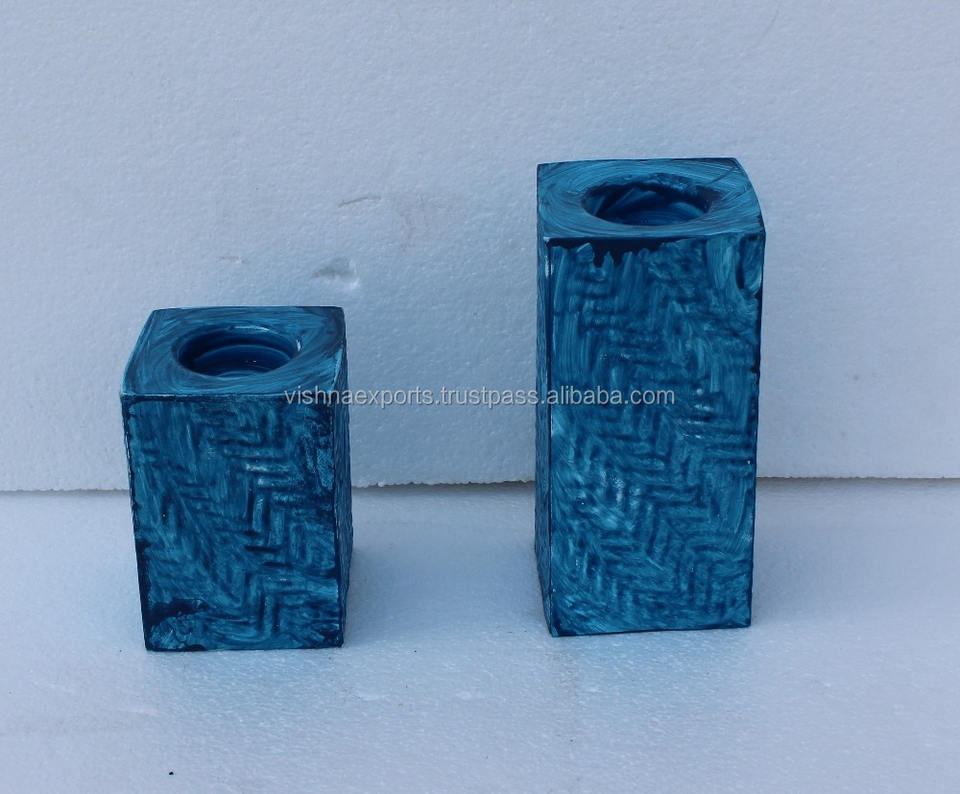 Juego de 2 Portavelas de Hierro Repujado Hechos a Mano, Ecológicos, Pintados de Azul, para Bodas