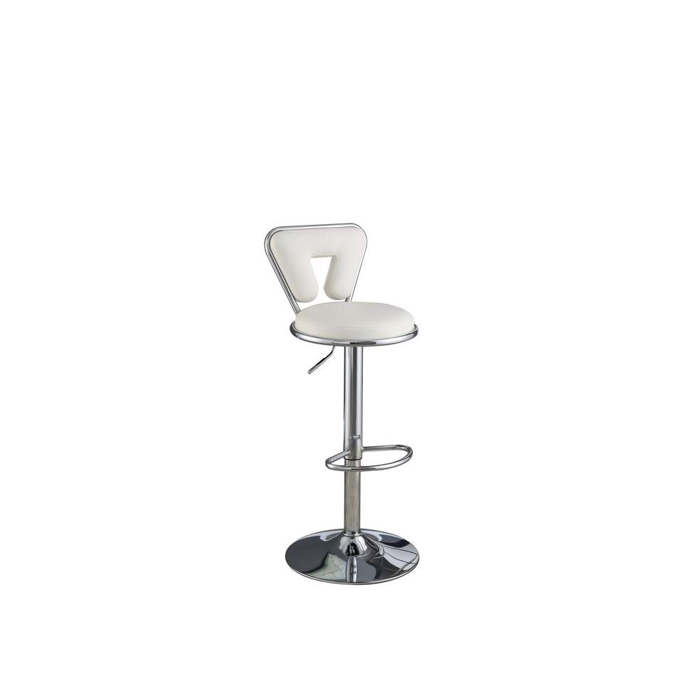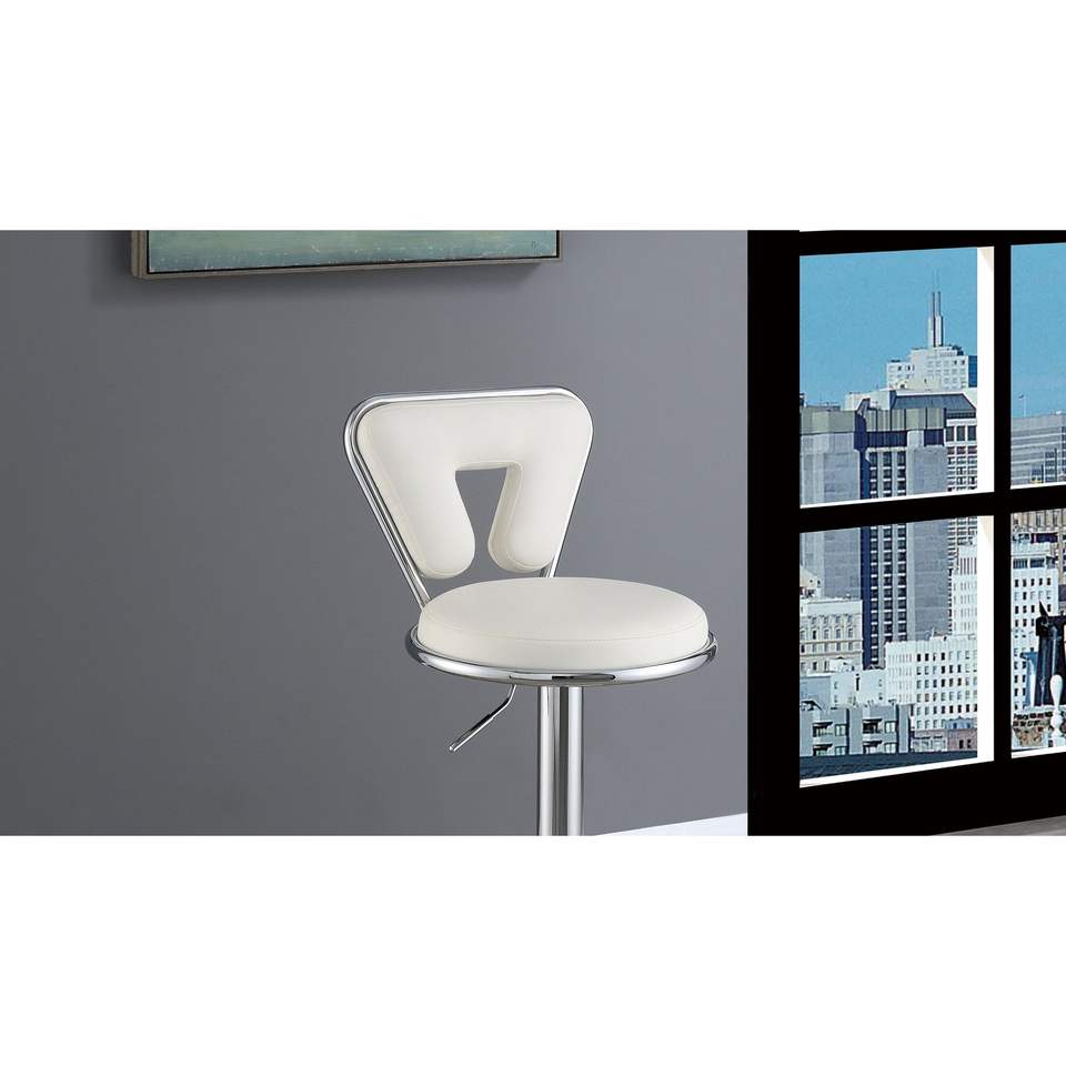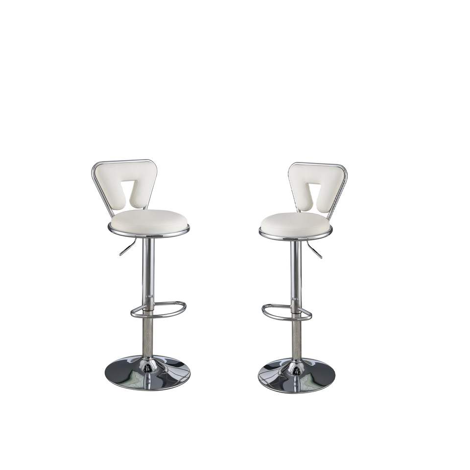 Juego de 2 Taburetes de Bar ajustables DB con estilo moderno, silla elevadora de gas con Base cromada de piel sintética blanca, marco de metal de diseño contemporáneo
