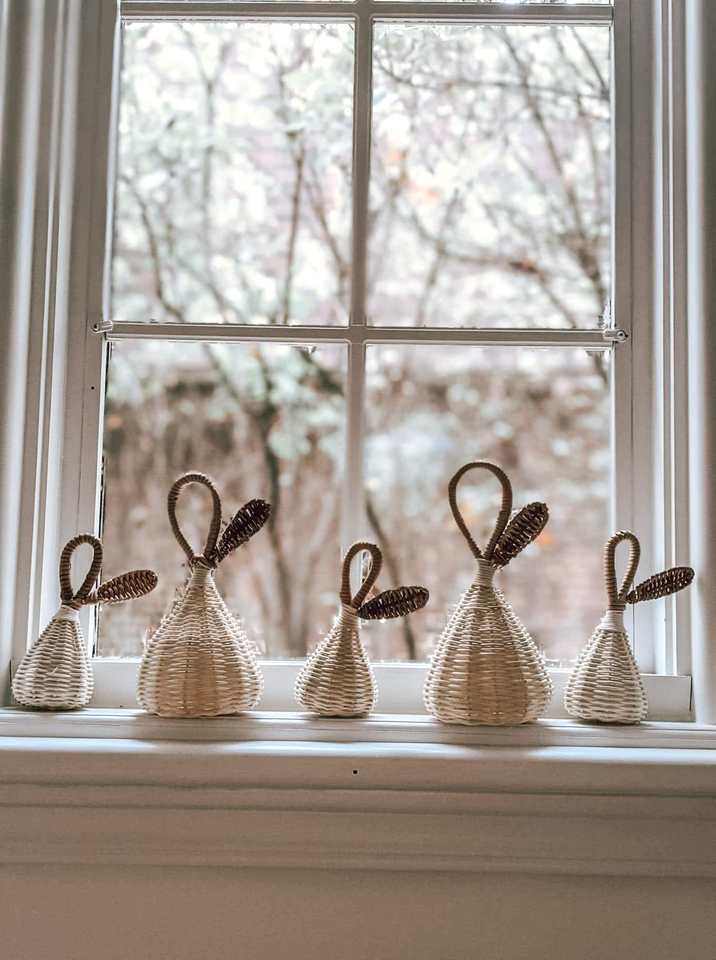 Juego de 2 Sonajeros de Ratán Ecológicos con Forma de Pera y Campana en el Interior, Decoración Nórdica para Habitación Infantil, Cesta de Almacenamiento Multifuncional Hecha en Vietnam