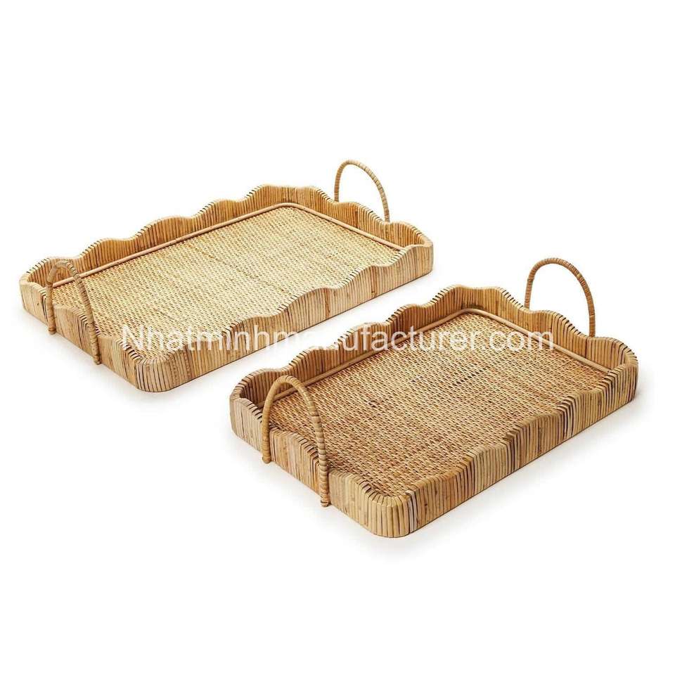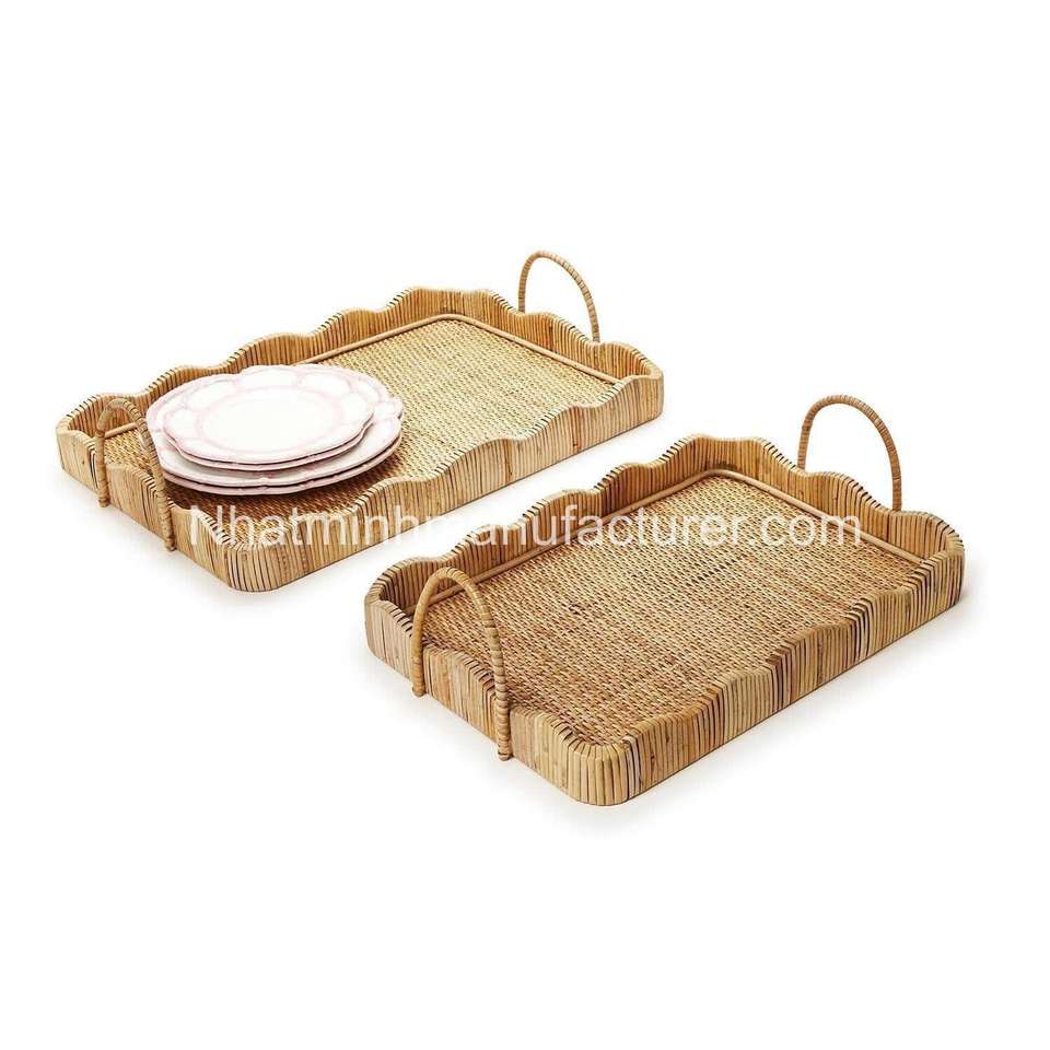Juego de 2 bandejas de ratán rectangulares con asas, tejido de ratán natural marco de madera, bandeja para platos