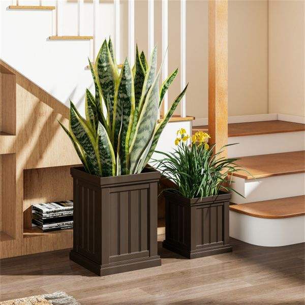 Juego de 2 Macetas Apilables de PP con Orificios de Drenaje Eficientes, Resistentes a la Intemperie para Uso en Interiores y Exteriores