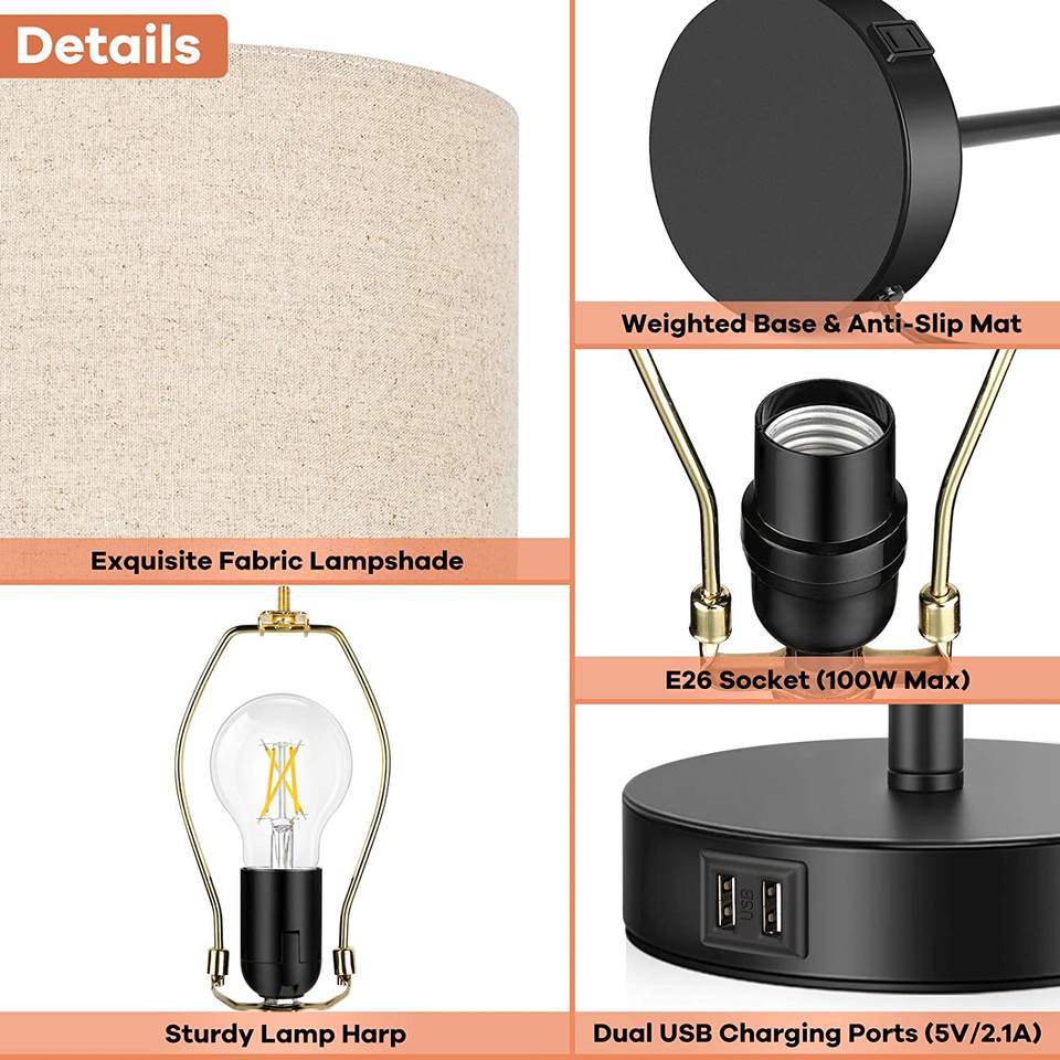 Juego de 2 lámparas de mesa altas con Control táctil, mesita de noche moderna con 2 puertos USB, para habitación, Hotel