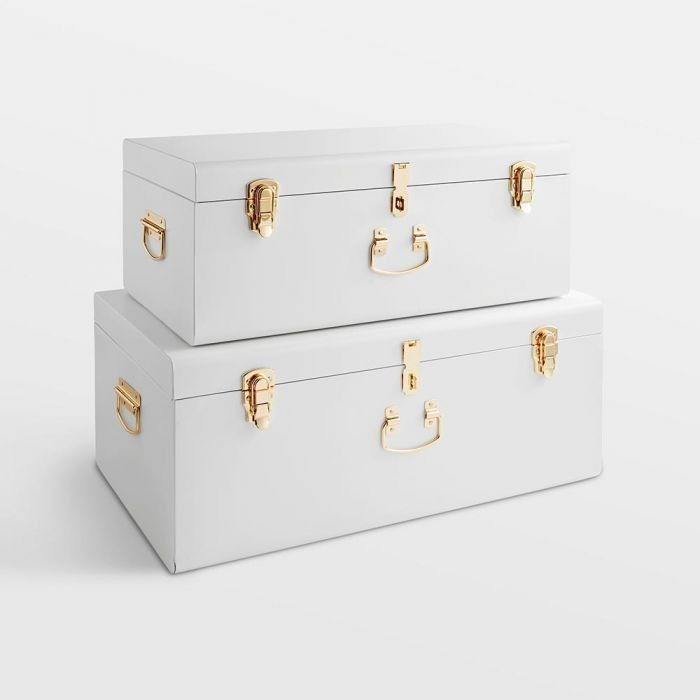 Juego de 2 Baúles de Almacenamiento Rectangulares de Metal Galvanizado Blanco, Estilo Americano, Multifuncionales, Capacidad Personalizable