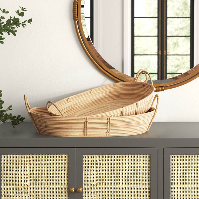 Juego de 2 bandejas decorativas de mimbre elegantes y elegantes para la decoración del hogar