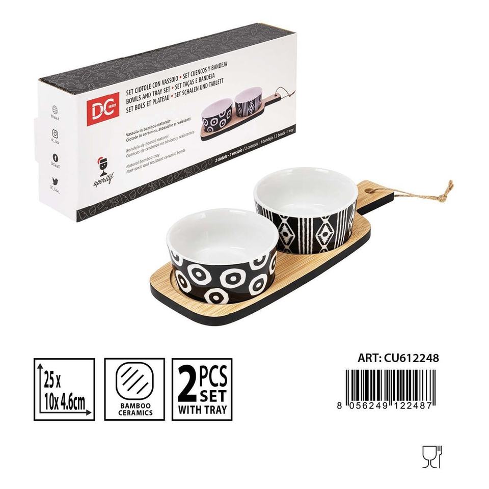 Juego de 2 cuencos y bandeja de cerámica 25x10x-Utensilios de cocina
